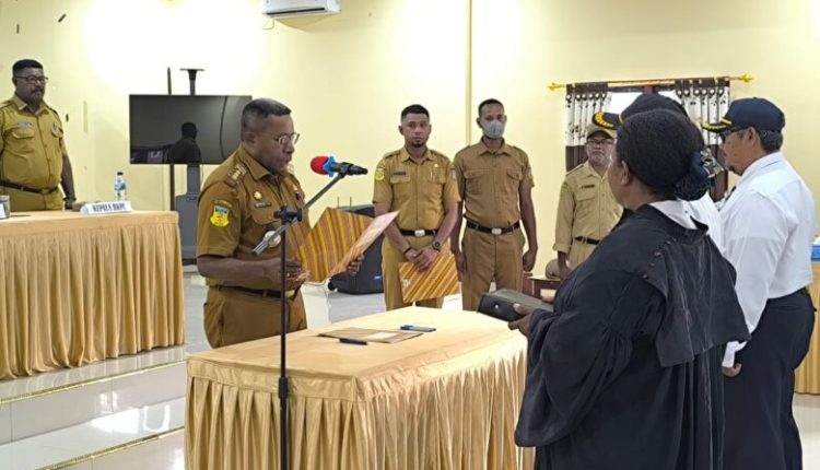 Bupati F.X Mote Dalam sambutanya menekankan pentingnya peran para pejabat yang baru dilantik dalam mendukung pembangunan daerah, khususnya dalam bidang pertanian, peternakan, dan perikanan yang menjadi sektor utama bagi masyarakat Waropen.