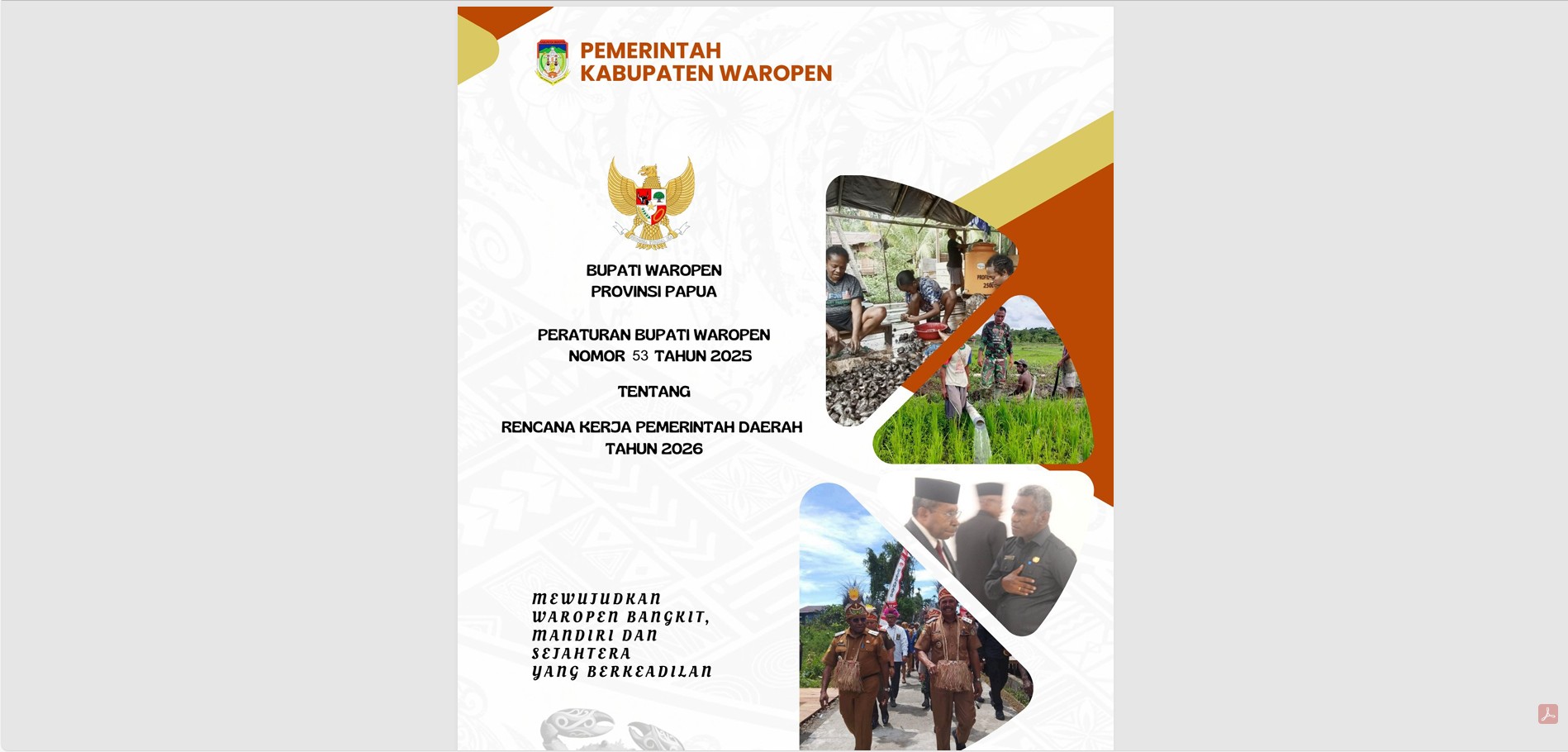 Peraturan Bupati Peraturan Bupati Waropen Nomor 53 Tahun 2025 Tentang RKPD SALINAN PERBUP NO.53 TAHUN 2025 TENTANG RKPD T.A. 2026 editDownload Pages: 1 2 3 4 5 6